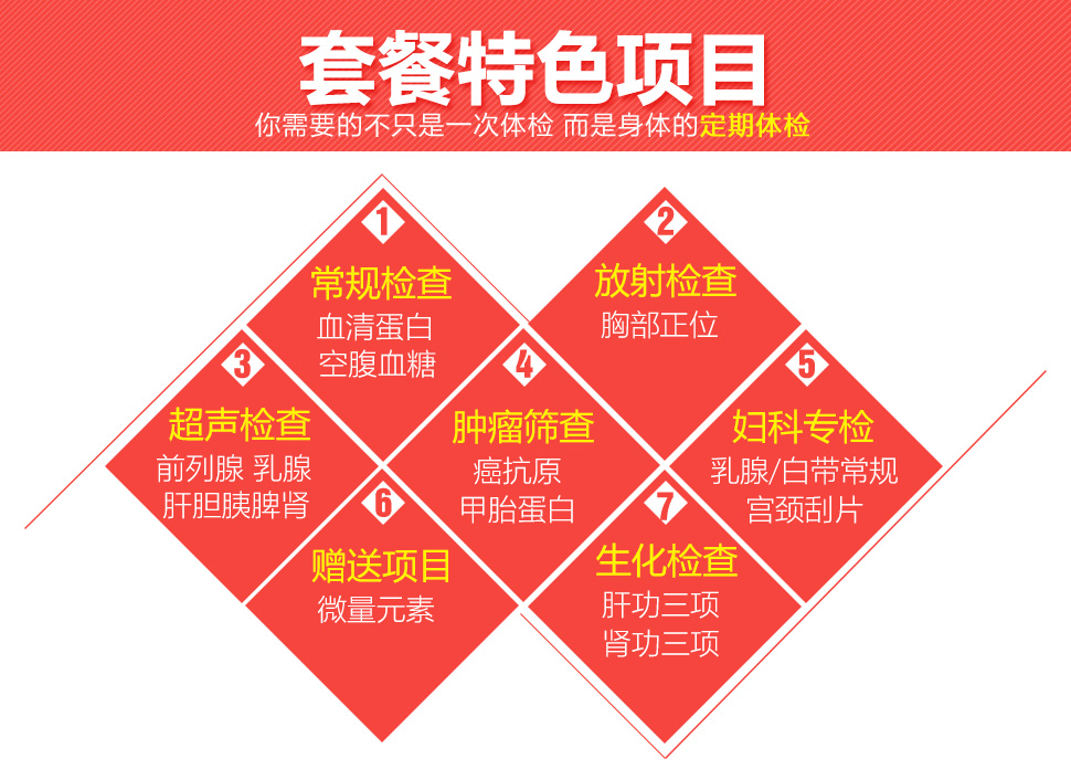 | 产品名称 : | 爱康国宾体检卡 VIP职场白领体检套餐全国23个城市(男女通用)门市价2542 |