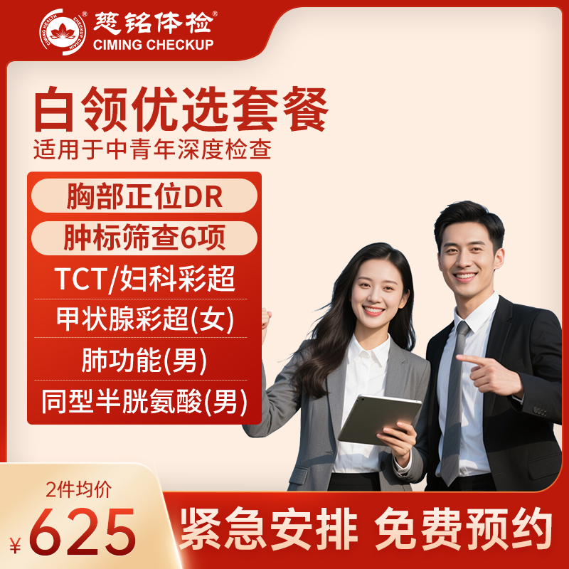 | 产品名称 : | 北京慈铭体检 白领优选套餐 性价比高 适用于中青年深度检查 |