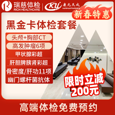 | 产品名称 : | 瑞慈体检卡 黑金卡体检套餐 双CT体检 中老年健康体检 |